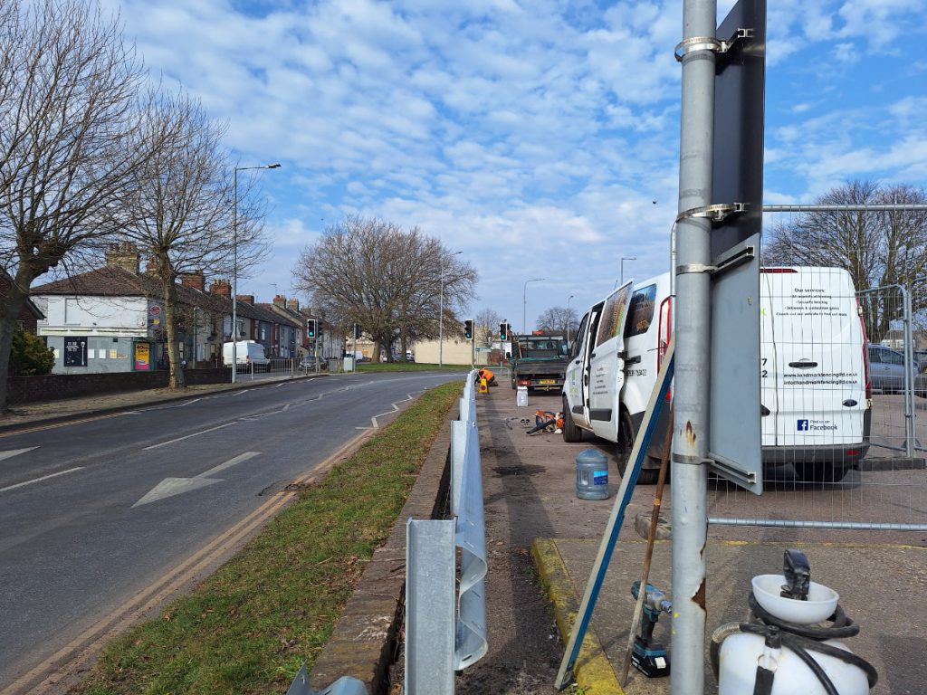 Additionally, we’ve recently completed 70m of Armco Barriers at Clapham Road car park in Lowestoft, significantly improving safety for both pedestrians and vehicles. We’ve also completed 100m of weld mesh fencing, and installed various signs in different locations. We’re also excited to announce that we’ve been awarded a major project at a sports ground in Felixstowe. Keep an eye out for updates and completion photos as we progress with this large-scale installation.